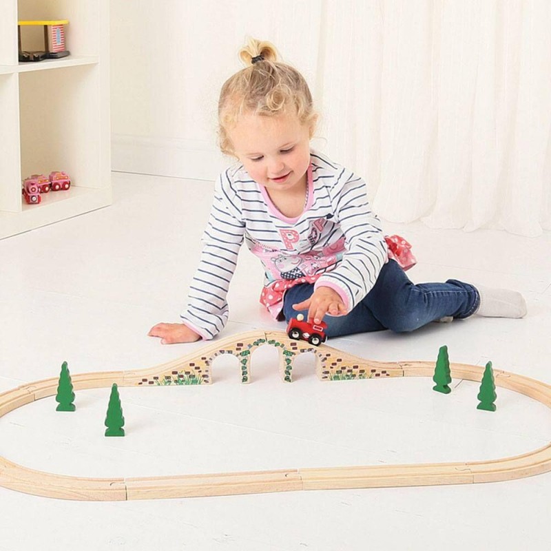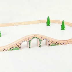 podul cu arcade este compatibil cu alte seturi de tren si accesorii din gama Bigjigs Rail sau seturi de la altebranduri care produc seturi de tren din lemn.
