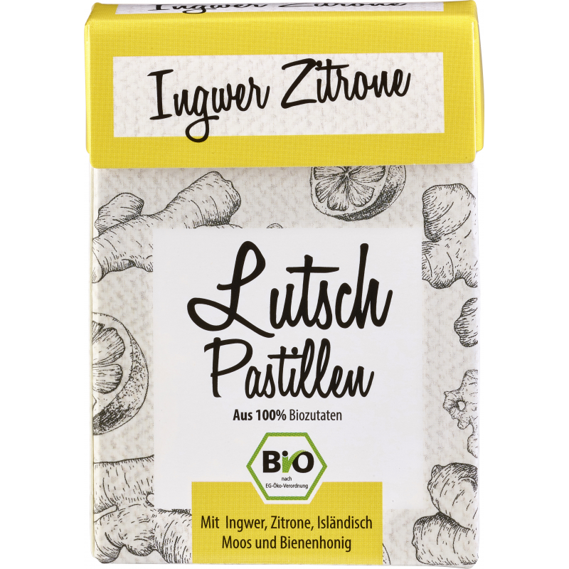 Ingrediente: agent gelificant: guma arabica*, zahar*, sirop de glucoza*, miere* 7.5%, extract de muschi islandez* 1.4%, concentrat de suc de lamaie* 0.8%, ulei de lamaie* 0.5%, ulei de ghimbir* 0.3%, extract de vanilie*, agent de demulare: ceara de carnauba*.