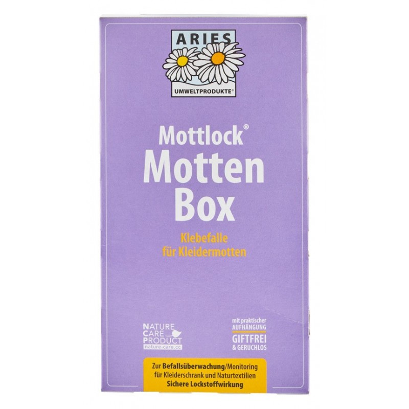 Capcana adeziva pentru molii Aries este non-toxica si inodora. Capcana este formata dintr-o cutie de protectie a materialului textil si o placa adeziva cu un atractant integrat (feromon). Este echipata cu un suport separat de agatare si, prin urmare, poate fi agatata convenabil pe o sina de haine.