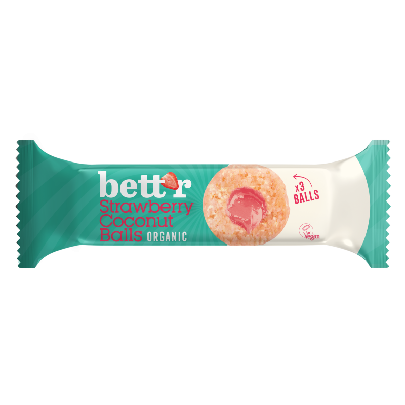 Bilute cu umplutura de capsuni si cocos bio, 3 buc x 15g, Bettr