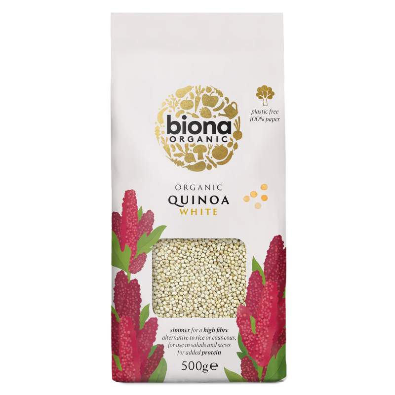Quinoa alba Biona este cultivata pe campurile bogate din Peru si Bolivia, fara utilizarea de OMG-uri, erbicide sau pesticide artificiale. Quinoa este adaosul perfect pentru orice fel de mancare, datorita aromei sale subtile de nuca si texturii usoare si pufoase. Adaugati-o in salate proaspete sau serviti cu tocanite si curry-uri parfumate, pentru o alternativa la orez, bogata in fibre.