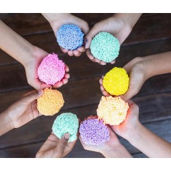 • textura speciala a spumei modelatoare incurajeaza perceptia senzoriala a copiilor si ii ajuta pe acestia sa isi dezvolte abilitatile motorii fine