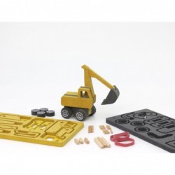 Ușor de construit de către copil (copilul construiește singur de la 7 ani) sau părinte și copil. Toate materialele necesare sunt incluse. O jucărie construită de cineva apropiat are o valoare specială și va fi folosită cu preponderență și mai mult timp decât o simplă jucărie. Din cutia de carton, marcate cu linii de ghidare, se pot decupa accesorii pentru completarea jocului imaginativ.