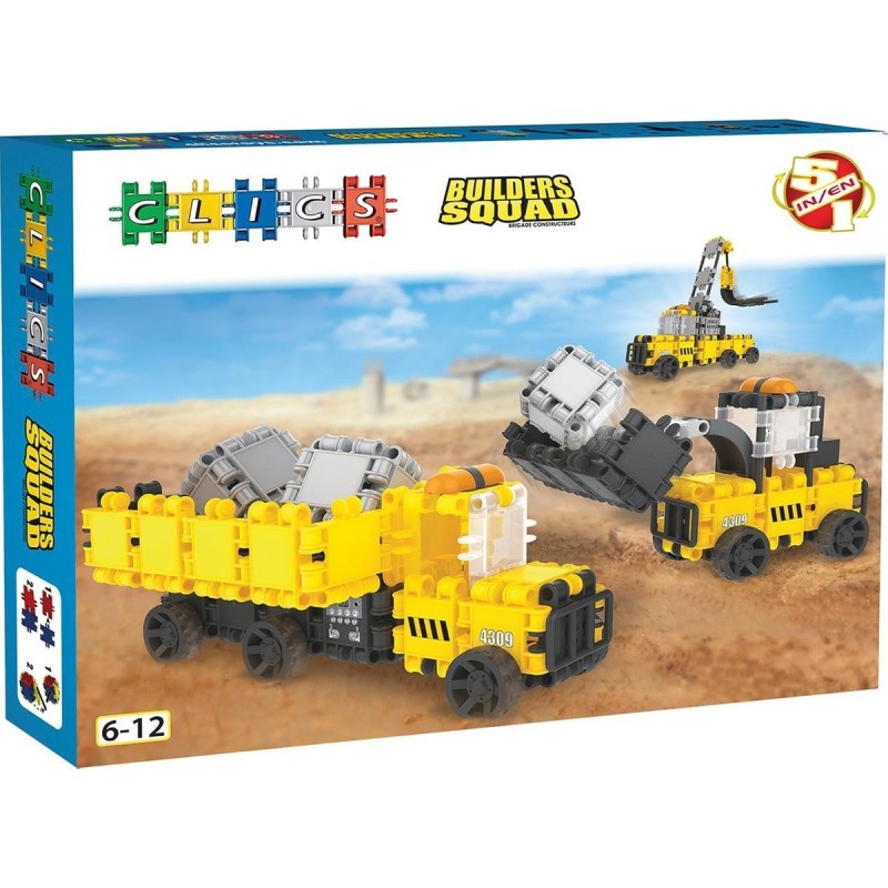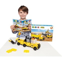 Proiectate și dezvoltate de specialiștii Clics - marcă de jucării multipremiată, seturile de construit Clicformers înseamnă mai mult decât o simplă jucărie. Sub sloganul „Let’s Click & Play”, ele reunesc piese și accesorii cu un mod inedit de a îmbinare a pieselor dezvoltând îndemânarea, creativitatea și imaginația copiilor. Utilizând patru metode de combinație unice - CLICK, STACK, FOLD, HOOK, seturile de construit permit copiilor să creeze aproape orice își imaginează. Clicformers oferă piese de bază simple, cu un nivel ridicat de aplicabilitate și diverse accesorii care aduc un plus de distracție. Diferitele seturi pot fi combinate liber între ele, astfel încât se pot crea structuri din ce în ce mai mari! Conține 90 de piese click + 32 de accesorii și autocolante. Sunt incluse planuri de construcție pentru a construi 5 vehicule de construcții cum ar fi camion, stivuitor, excavator, buldozer, etc. Confecționat din plastic reciclat. Conform standardelor EN71. Vârsta recomandată 6 - 12 ani. AVERTISMENT: Contraindicat copiilor sub 3 ani. Conține piese mici. A se utiliza sub directa supraveghere a unui adult.