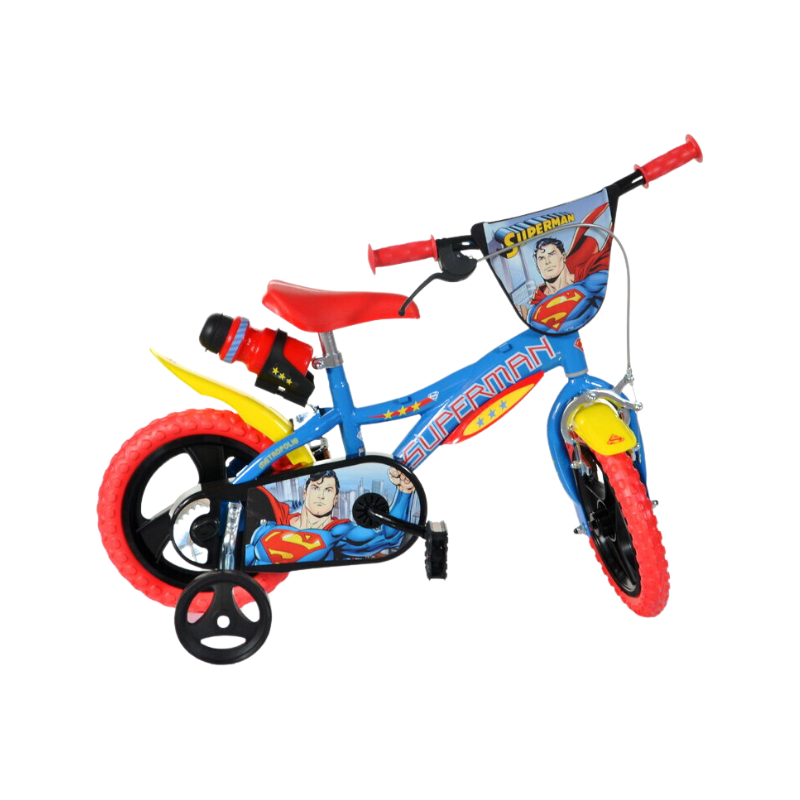 - bicicleta cu personajul Superman pentru baieti, potrivita pentru copii cu varsta intre 3 si 4 ani cu o inaltime intre 87- 110 cm, este o alegere perfecta pentru micutii fani ai supereroului preferat