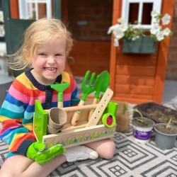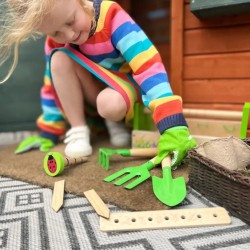 - descopera un set de ustensile inedit ce il va ajuta pe copilas sa isi dezvolte indemanarea si motrocitatea fina in timp ce isi poate crea o mica gradina