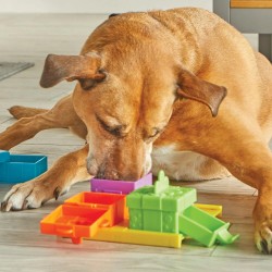 - cele patru cutiute de cadou se deschid in mod diferit, provocandu-i pe catei sa gliseze, sa roteasca, sa rastoarne si sa traga pentru a ajunge la delicioasele gustari