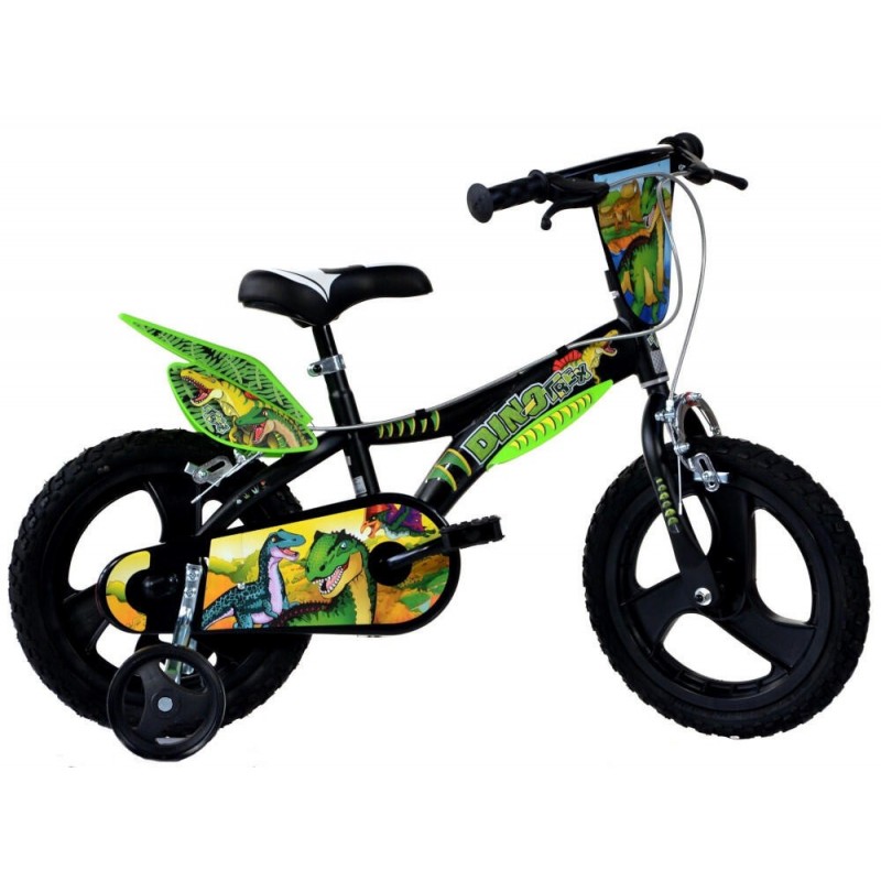 - atat cadrul bicicletei, cat si aparatoarea de lant sunt personalizate cu imaginea unui T-rex furios, oferind o nota distinctiva si atragatoare intregii biciclete
