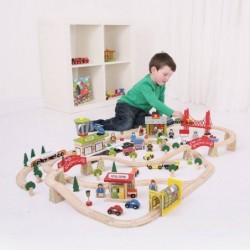 - setul de tren din lemn este un joc distractiv, care contine un helioport, statie de benzina, barca si vehicule utilitare, spital si instalatie de spalare a trenurilor, ce pot aduce varietate la fiecare sesiune de joc